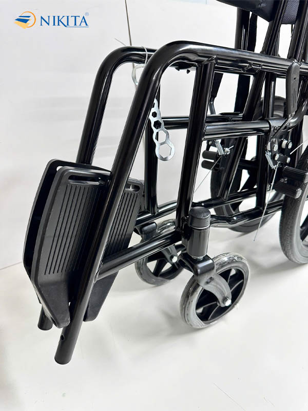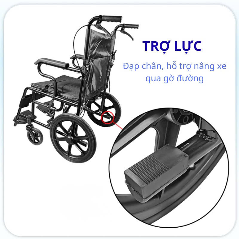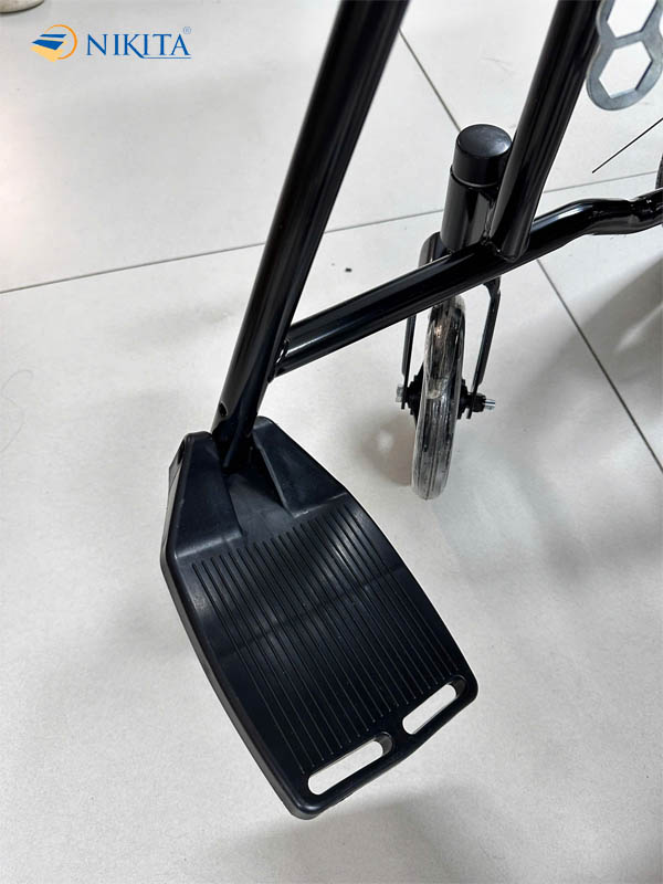 Xe lăn NIKITA N216-2 được tích hợp bàn đạp trợ lực, hỗ trợ nâng bánh xe khi gặp gờ đường, bậc thấp hoặc chướng ngại nhỏ. Tính năng này giúp người đẩy xe nhẹ nhàng hơn, giảm sức lực đáng kể.