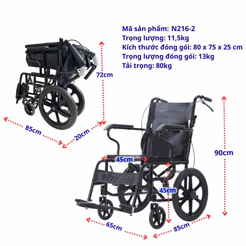 Xe lăn trợ lực có phanh an toàn, gấp gọn NIKITA N216-2 là dòng xe lăn tay cao cấp được thiết kế tối ưu cho người già, người khuyết tật hoặc người gặp khó khăn trong vận động. Sản phẩm nổi bật với khung chắc chắn, hệ thống phanh an toàn, trợ lực thông minh và khả năng gấp gọn linh hoạt, mang lại sự an tâm và thoải mái tối đa trong quá trình sử dụng.